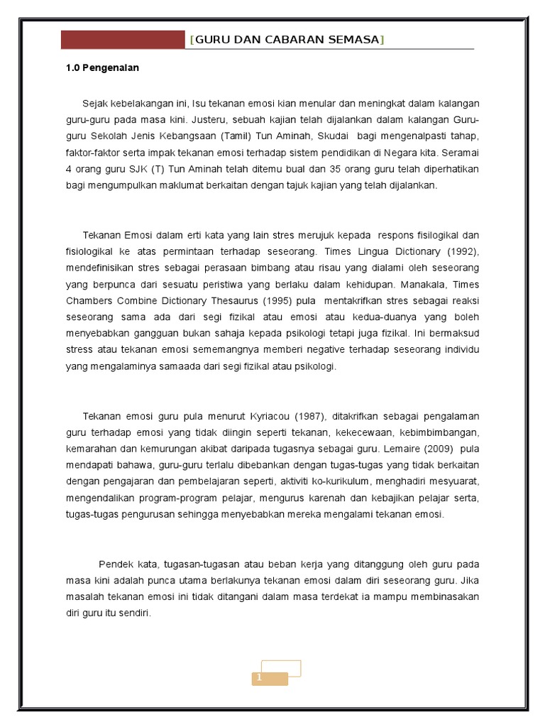 Tekanan Emosi Dalam Kalangan Guru Sjk Pdf